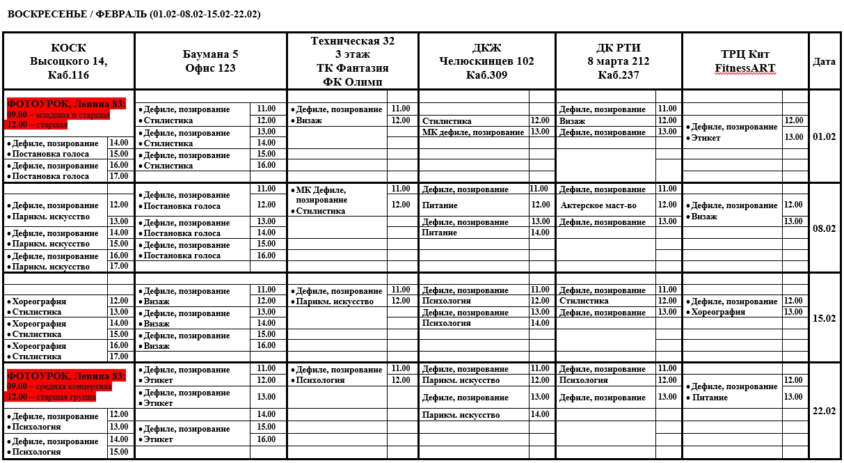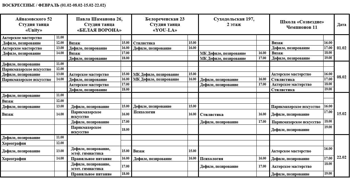 К предметам Психология, стилистика, этикет, питание, английский язык для моделей и др.: